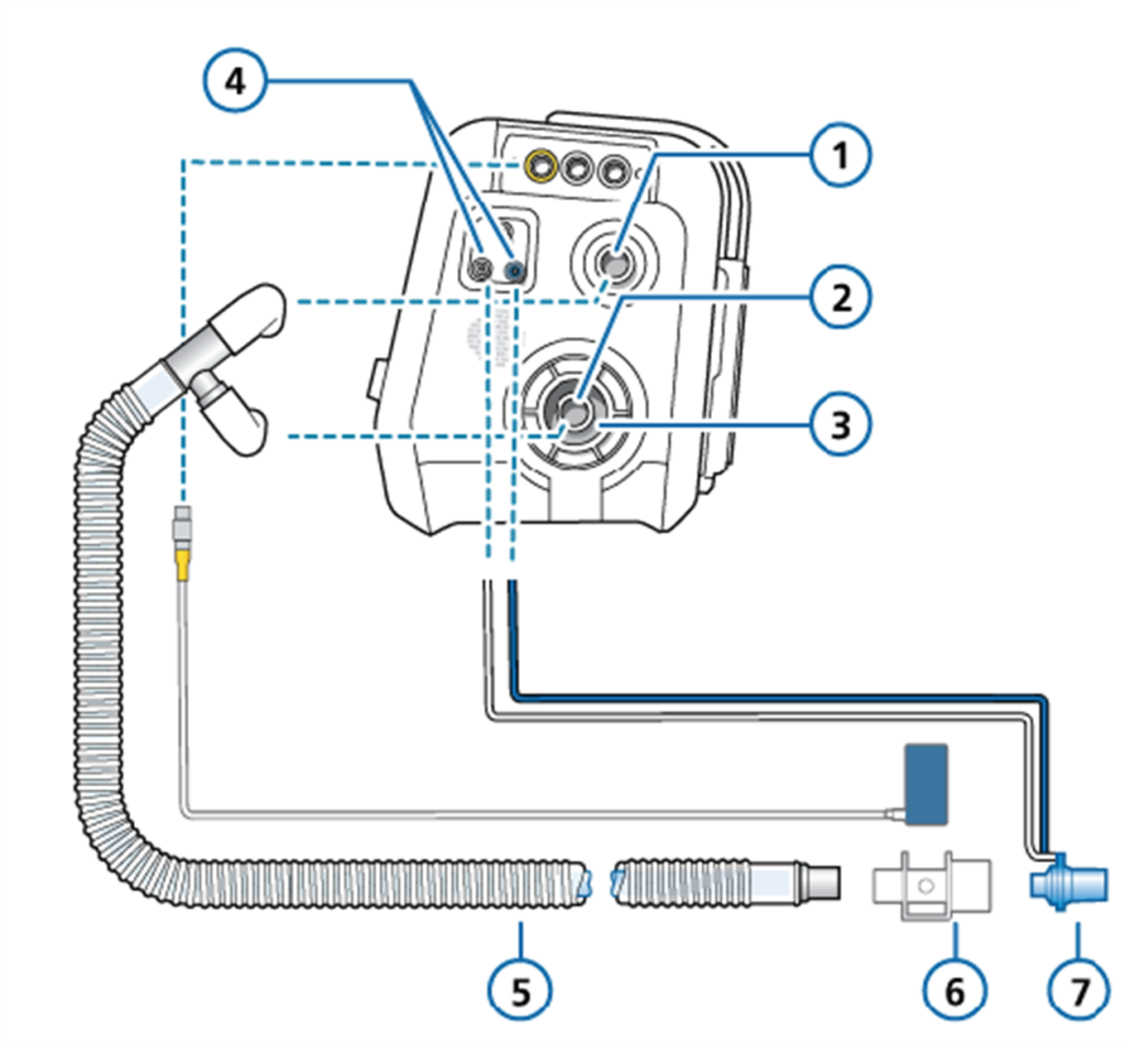 6. Inspiration hold Tijdens het indrukken van deze knop wordt de inspiratie vastgehouden. Dit maakt het mogelijk om een plateaudruk te meten